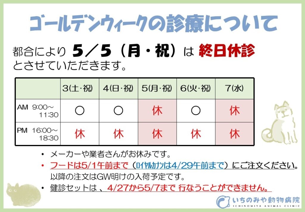 🔹 å„診ć»ćć㯠ć4/27ćć5/7ć¾ć§ č”ćŖćććØćć§ćć¾ććć