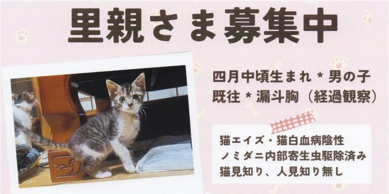 今年の4月ごろ生まれのかわいい子猫ちゃんの里親さんを募集しています!