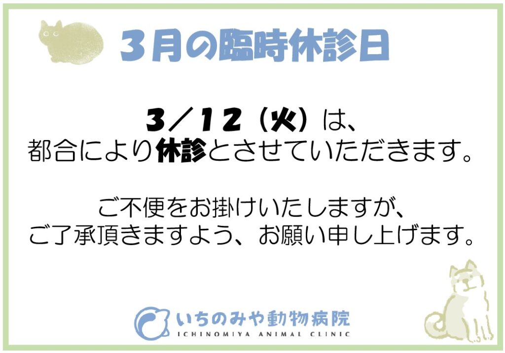 🔸3月の臨時休診日🏥 投稿日 2024年2月8日 著者 ichinomiya-ac カテゴリー お知らせ 3/12(火)は、都合により休診とさせて頂きます。 ご不便をおかけいたしますが、ご了承頂きますよう、よろしくお願い申しあげます。 この記事を書いた人 ichinomiya-ac 記事一覧