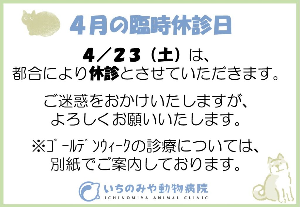 ※ゴールデンウィークの診療については、こちらをご確認ください。